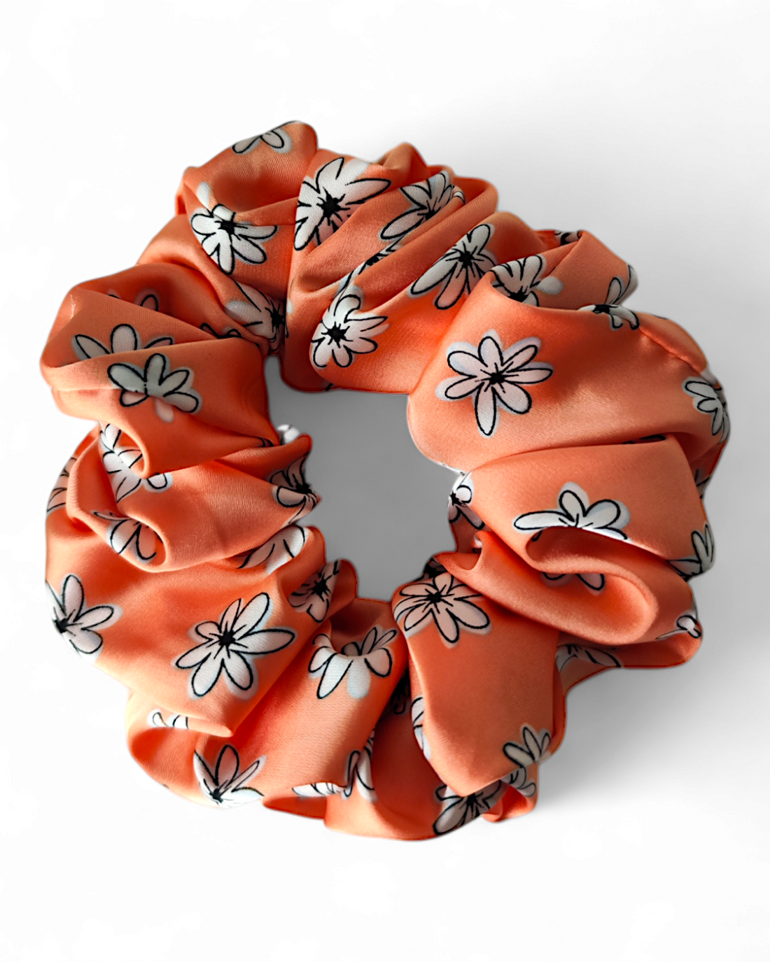 Elastic din satin portocaliu cu flori