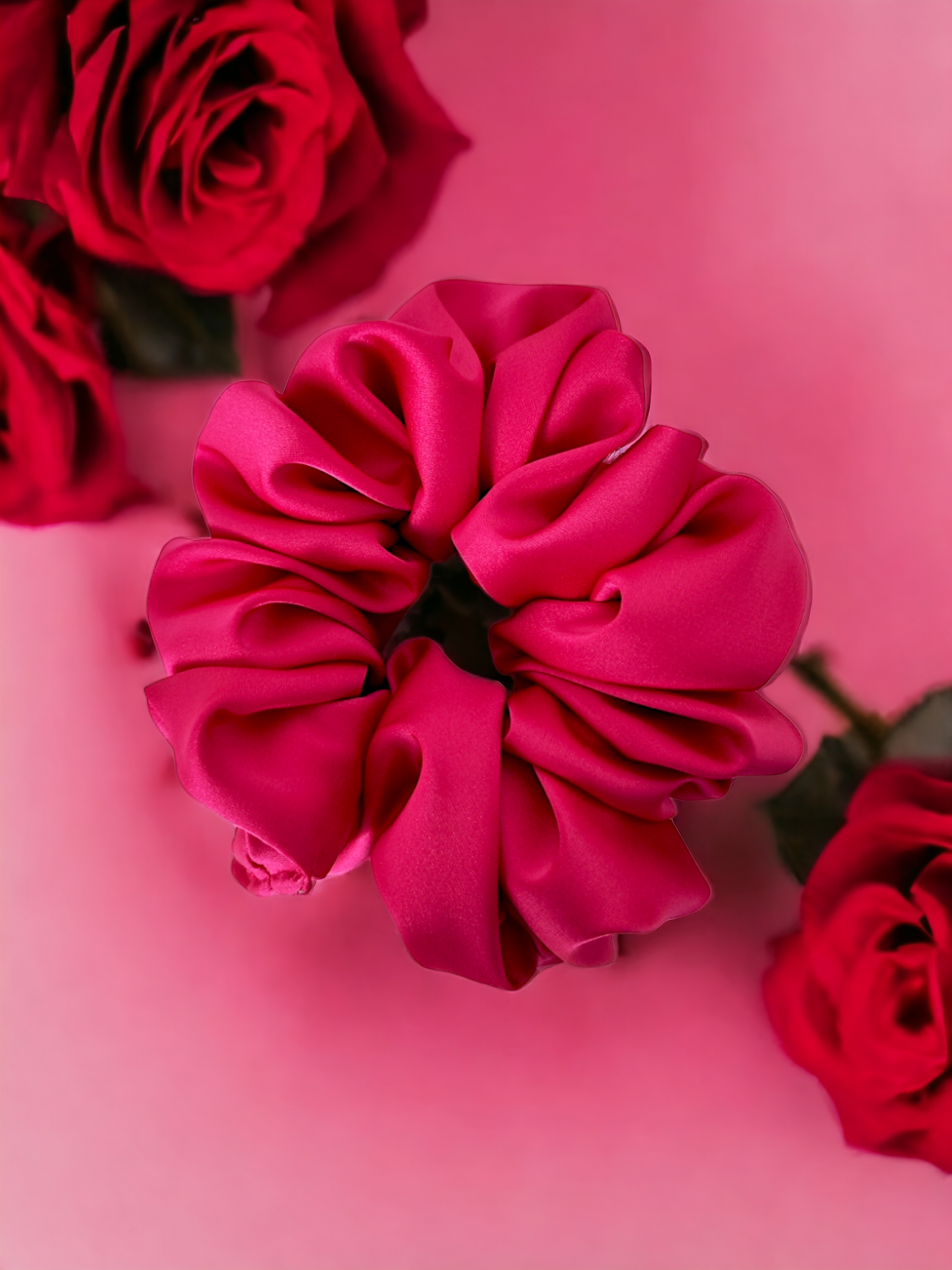 Descoperă noul tău accesoriu preferat - elasticul din satin fuxia - Medium.