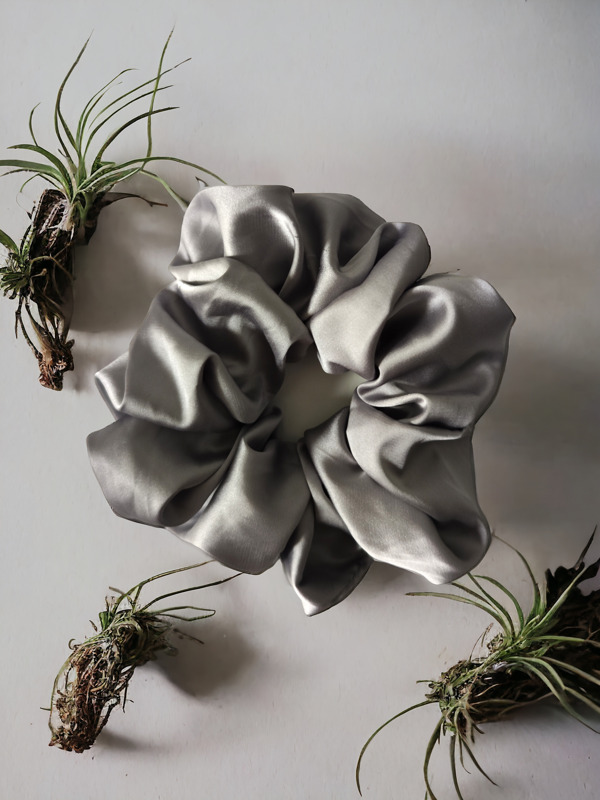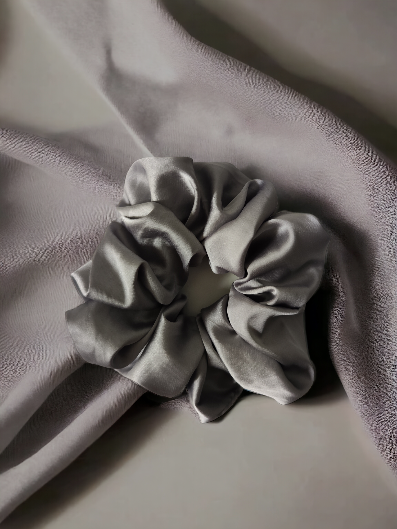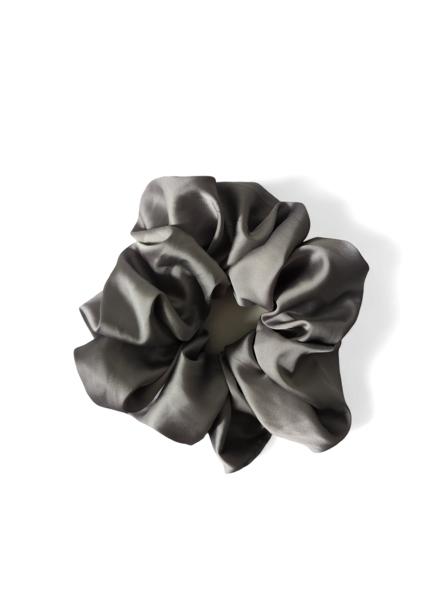 Descoperă noul tău accesoriu preferat - elasticul din satin gri - medium.
